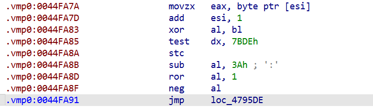 By iterating this process, we can summarize each handler as a higher-level VM instruction: load, store, add, logical operations, branches, and so on. That is, we start to see each handler as one instruction in the VM’s instruction set.