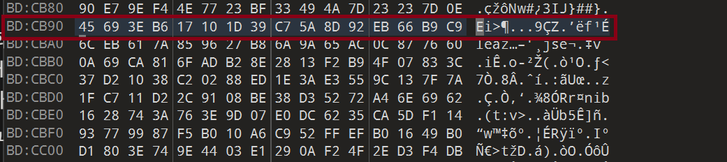 0x00000050 31 1b 0c 74 80 96 8c f2 ad 9d 28 26 f9 ce 8d 16 1..t......(&....
